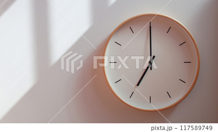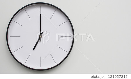 Minimalist Black and White Wall Clock on White background - Perfect for Time Management and Scheduling Concepts - 19.00/07.00