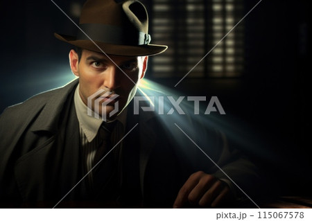 Mysterious Man in Vintage Suit and Fedora Hat