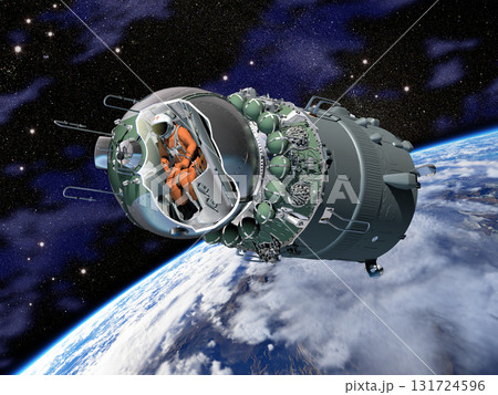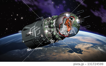Spaceship Vostok-1 at the orbit. 3D Illustration.