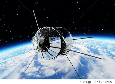 Spaceship Vostok-1 at the orbit. 3D Illustration.
