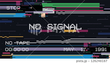 Glitch signal background. Retro VHS tape with television screen distortion, digital video error glitches and static noise, 90s vintage TV pixel glitchy texture. Vector illustration