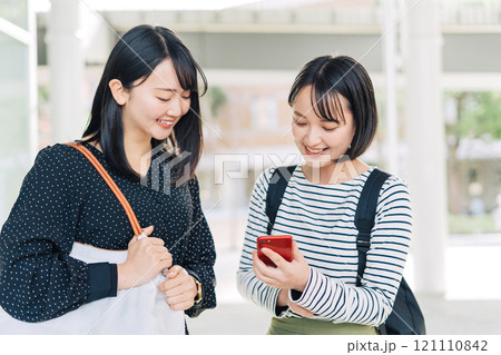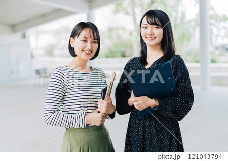 女大學生在校園裡聊天