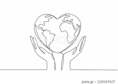 Continuous one line drawing two hands cradle heart-shaped earth. Humanity's responsibility to care for and protect our planet. Random Acts of Kindness Day. Single line draw design vector illustration