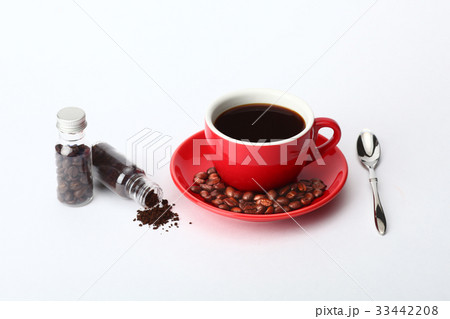 Black coffee and coffee beans