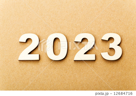 woodblocks cubes square with number 2023 on wood table. business goals next year.
