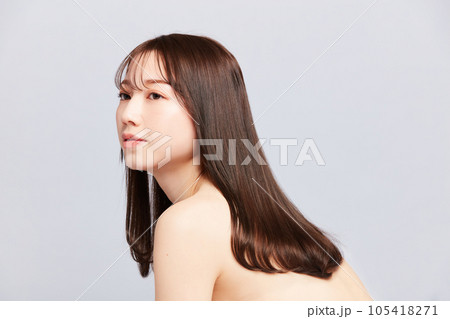 美麗的年輕日本女人與美麗的頭髮