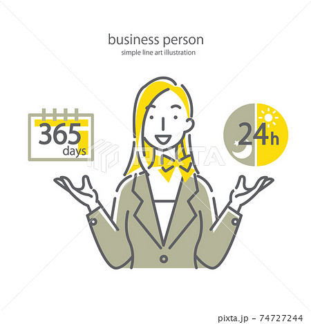 指導營業時間的女商人的簡單時尚的線條藝術插圖素材