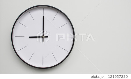 Minimalist Black and White Wall Clock on White background - Perfect for Time Management and Scheduling Concepts - 09.00/21.00