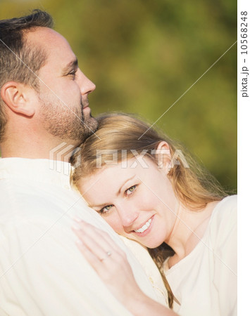 USA, Utah, Lehi, Young pregnant woman holding open book
