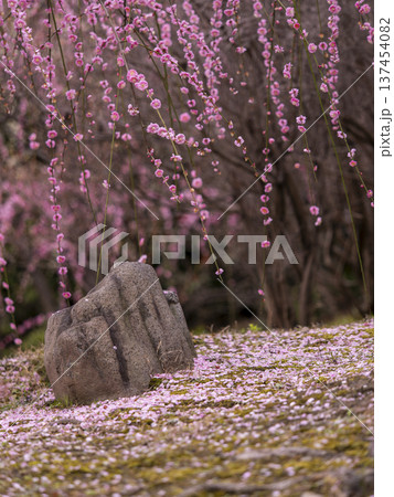 喬南古神社:一片垂枝梅花和落花鋪成的地毯