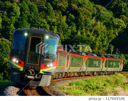2700系列柴油列車/特快南風號在夕陽下穿過贊岐再田的大彎道。