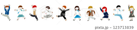 手繪插圖:一群穿著制服的孩子