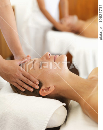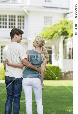 Front view of mid adult couple sitting on couch and fighting for remote control