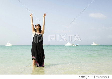 Puerto Rico, San Juan, Happy woman with shopping bag
