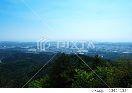 從東日本大地震中恢復過來的宮城縣石卷市日和山的中澤公園和舊北上川市區