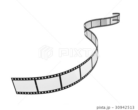 Curved perspective of a 35mm film strip fading to white on a white background
