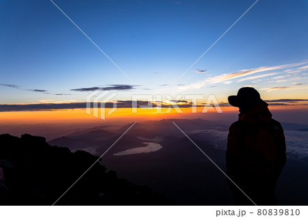 在富士山頂看日出的人