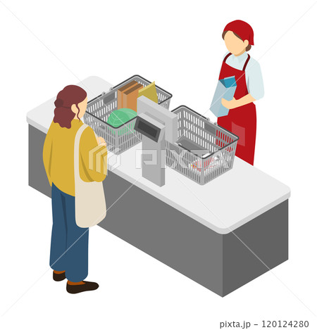 等軸圖:超市店員及顧客(紅色圍裙)