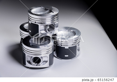 New parts for the internal combustion engine. Pistons on a gray gradient background