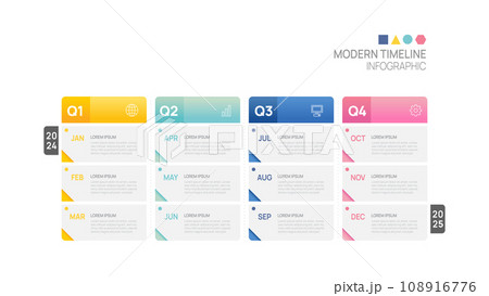 Infographic 2023 template for business. Modern Timeline diagram calendar and 4 quarter topics, Can be used for vector infographics, flow charts, presentations, websites.