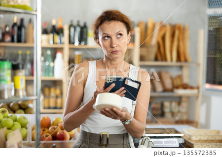 Adult woman scanning qr code of cheese