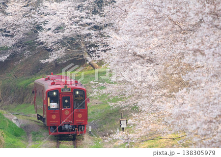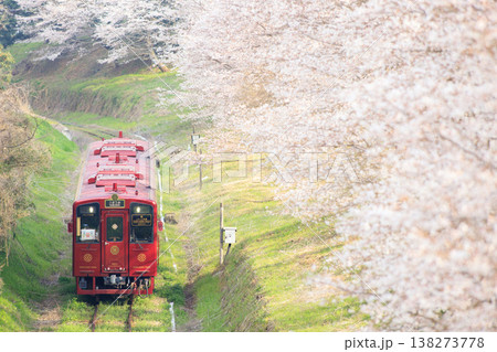 一排排櫻花樹和“琴琴”(平成築豐鐵道)