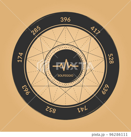 Beautiful Emblem of 741 Hertz. Solfeggio Frequency. Isolated Vector Illustration