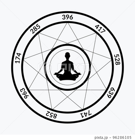 The Nine Frequencies of Solfeggio With Meditating person. Isolated Vector Illustration
