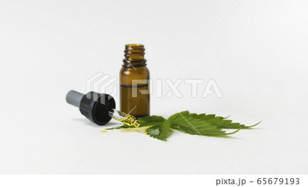 Close-up of cannabis leaves on pastel green background, natural health and botanical concept