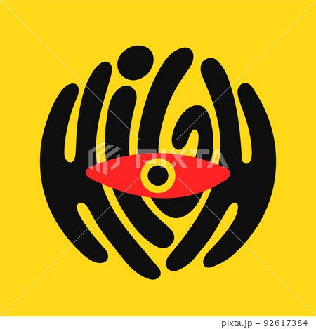 High circle quote with red eye. Vector hand drawn cartoon illustration. High text print for t-shirt,poster,card concept