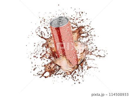 Blank red aluminum 500 ml soda can with drops splash mockup