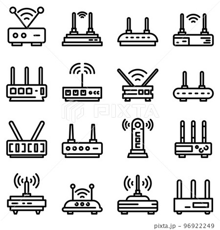 Modem icons set. Outline set of modem vector icons for web design isolated on white background