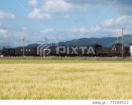 熊本縣宇岐市小川町北部田小川站~松橋站北上的蒸汽機車人吉100週年紀念列車
