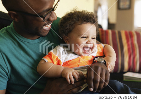 Father holding baby son (6-11 months) in forest, Wasatch-Cache National Forest