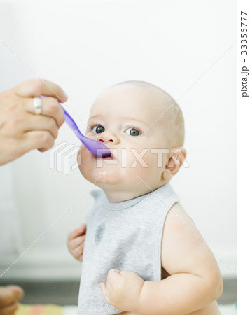 Portrait of baby girl (6-11 Months) smiling, directly above