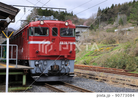 ED75-758(Kazekko Senzan Line Sakunami)在JR Senzan Line Sakunami站停靠_2022/4/16 拍攝