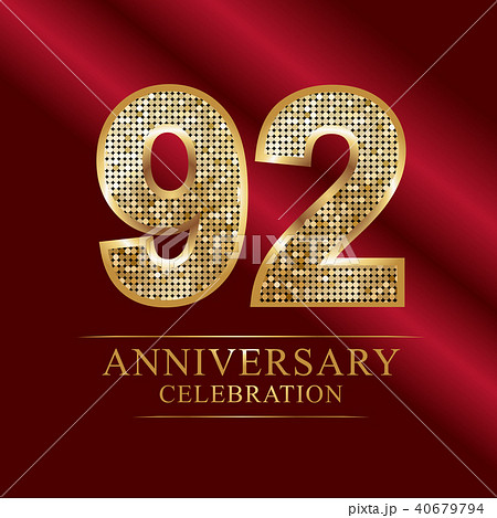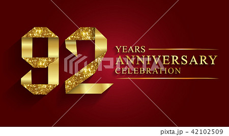 92 years anniversary logo ribbon golden numbers.