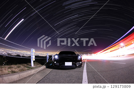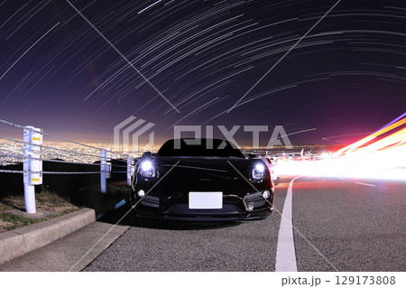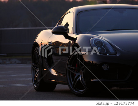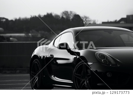 一輛黑色敞篷車停在空蕩蕩的停車場裡