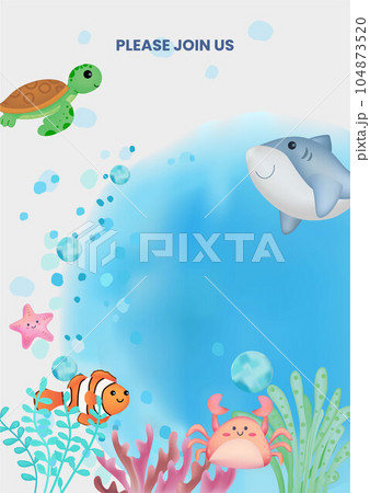 Cute Ocean Fish Theme Invitation Template frame, cute shark