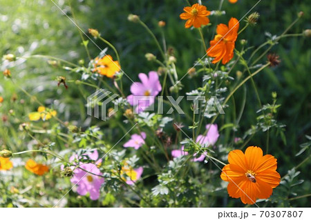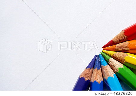 彩虹形狀的半圓由紅色,橙色,黃色,綠色,藍色,靛藍和紫羅蘭色的鉛筆製成。