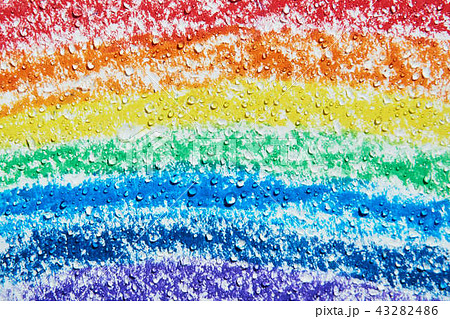 與被栓的水滴的彩虹背景,被畫的蠟筆。