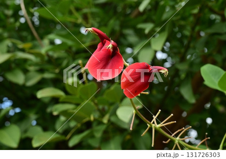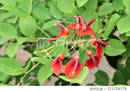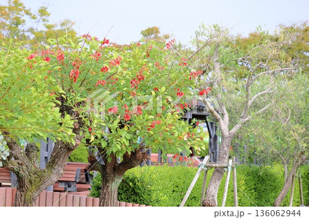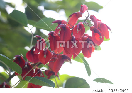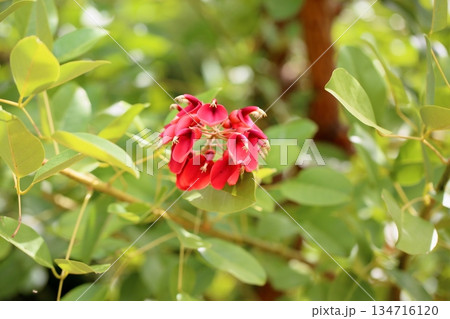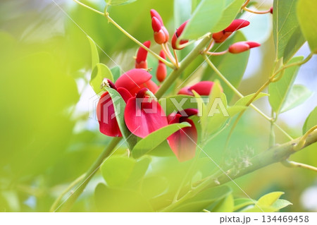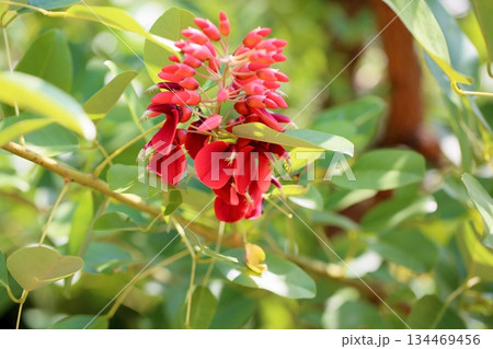 初夏公園裡盛開的美國 Deigo (Kaikouzu) 的紅色花朵