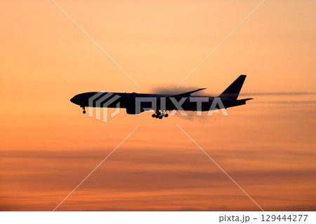 飛機在日落背景下起飛和降落