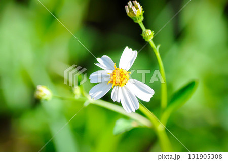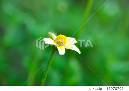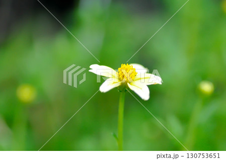 Delicate White Bidens Alba Flower with Yellow Center and Green Background
