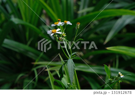 Beggars tick, Bidens Alba, Bidens pilosa or Bidens pilosa L, Black jack or Broom stick or Broom stuff or Cobblers pegs, Devils needles or Hairy beggar ticks or Hairy bidens or Spanish needle