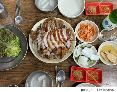 Suyuk, Bossam, 靜物, 韓國料理, 餐桌佈置, 韓國