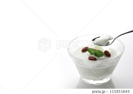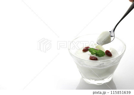 來自中國的甜點:杏仁豆腐配枸杞和薄荷作為裝飾(白色背景)