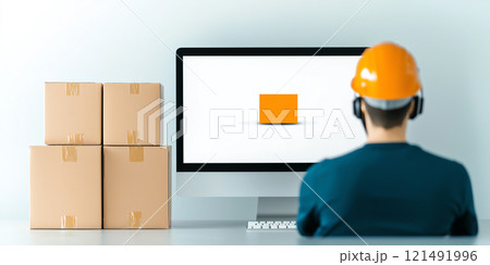 Young Entrepreneur Managing Online Business from Home Office with Laptop and Shipping Boxes
