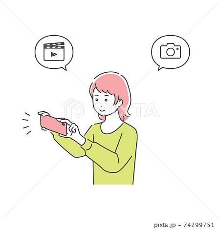 使用 SNS 的穿著西裝的男人和女人的圖像插圖