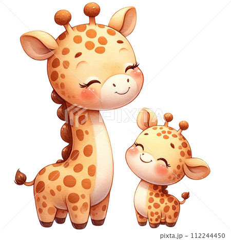 Giraffe mom and baby love watercolor clipart.Ai Generate